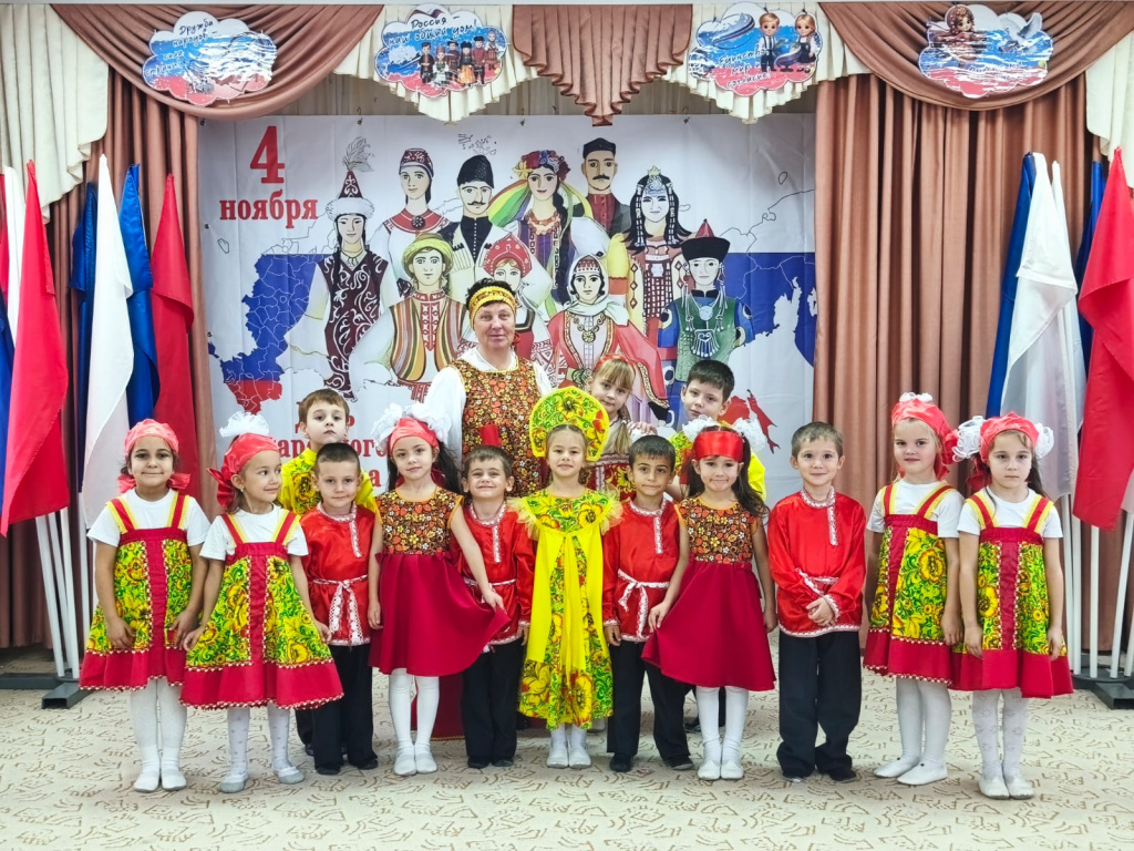 4 ноября в Российской Федерации празднуется День народного единства. Этот государственный праздник занимает важное место в календаре страны. В преддверии этого события в нашем детском саду проводятся различные мероприятия, направленные на воспитание патриотизма у детей дошкольного возраста. Цель этих мероприятий — познакомить малышей с историей России, её героическим прошлым и расширить их знания о народах, населяющих нашу многонациональную страну.