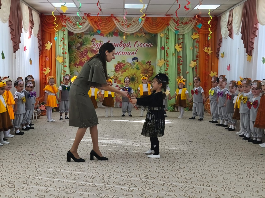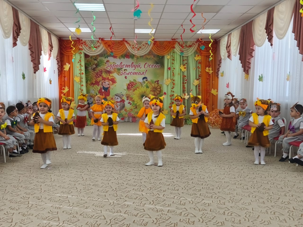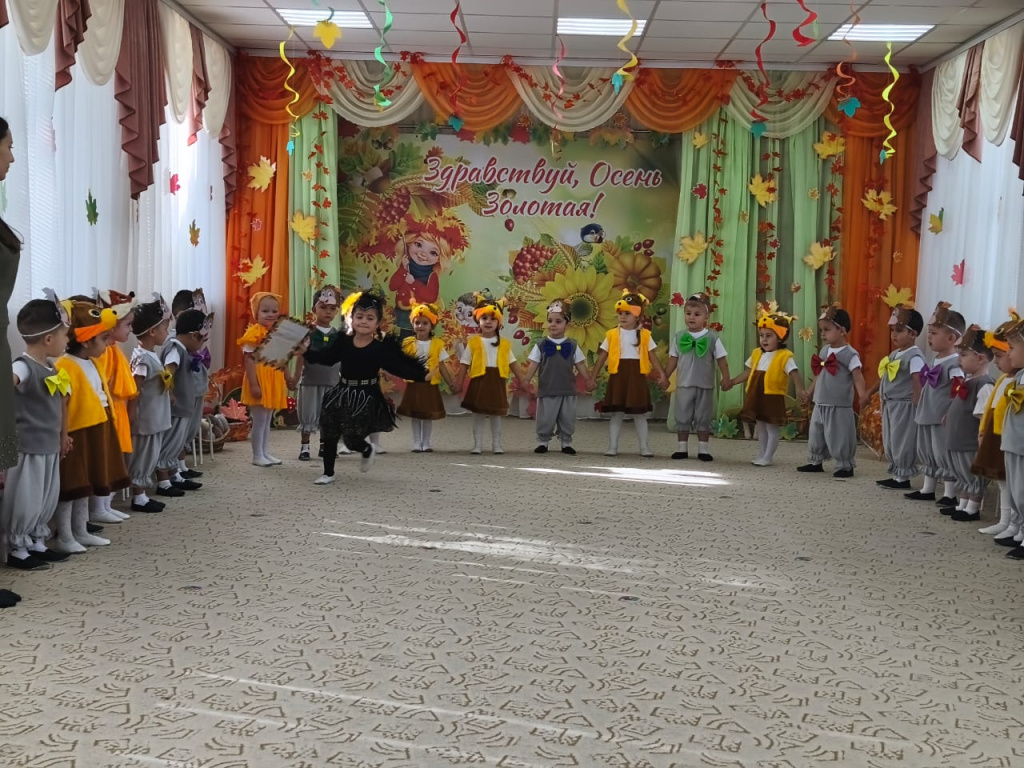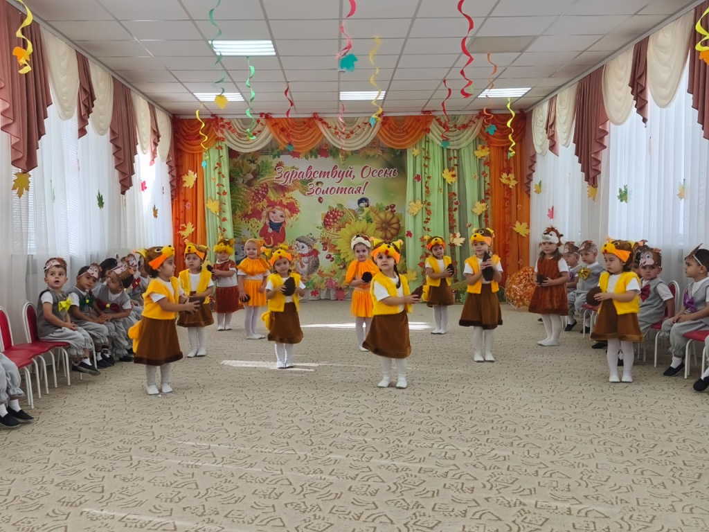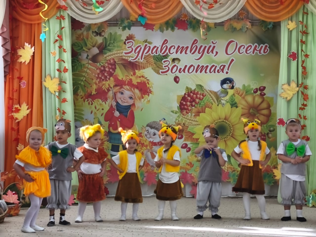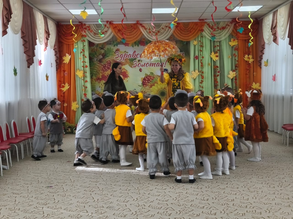В младшей группе «Смешарики» прошел первый осенний утренник. Воспитатель Решетова Э. Л. подготовила детей к празднику. Они учили песни, стихи об осени и разучивали танец.