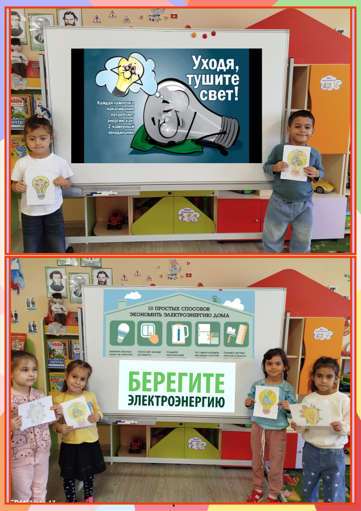 Цель мероприятия — познакомить детей с простыми способами экономии электроэнергии и тепла в детском саду и дома. Также они узнали о роли энергии в сохранении природных ресурсов.