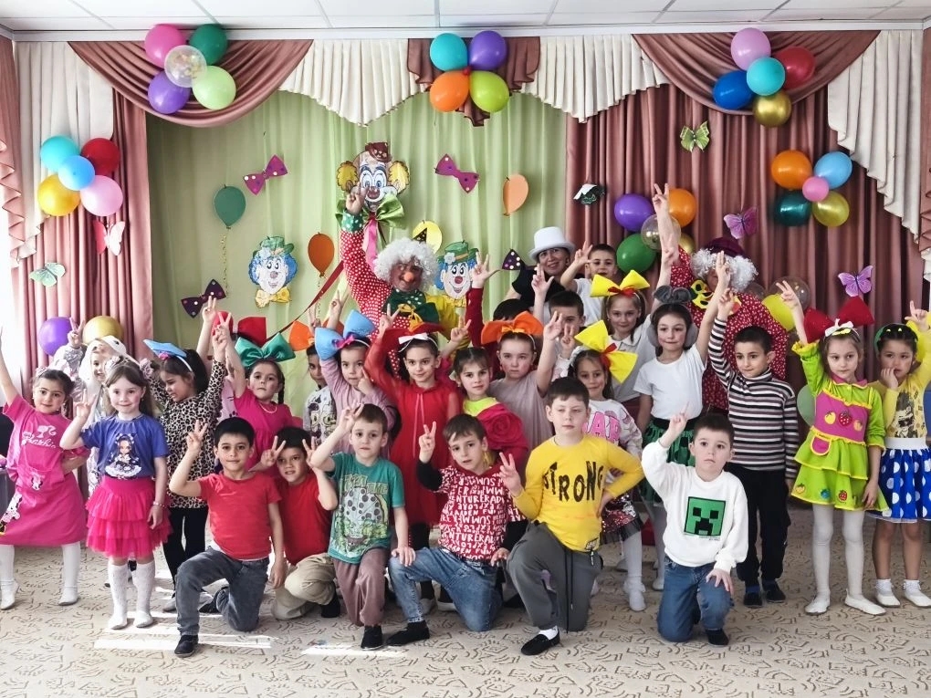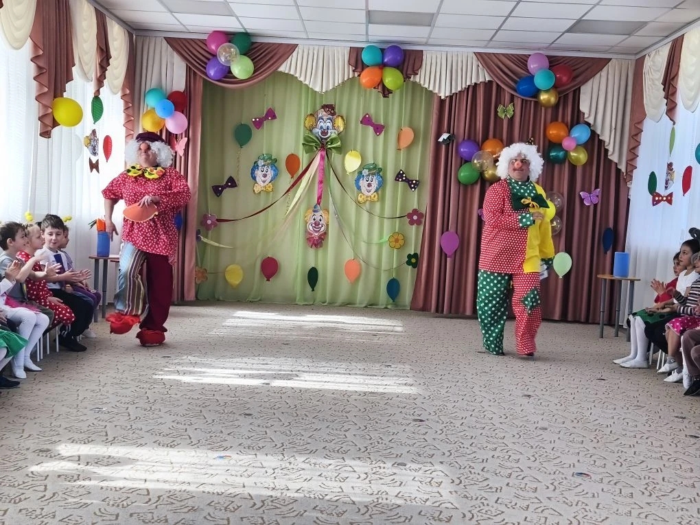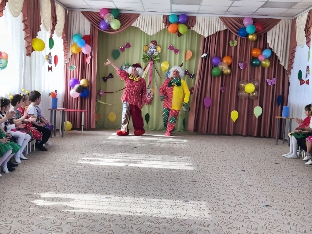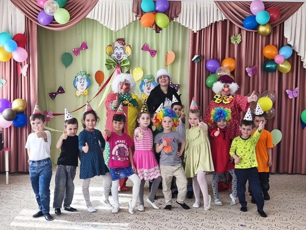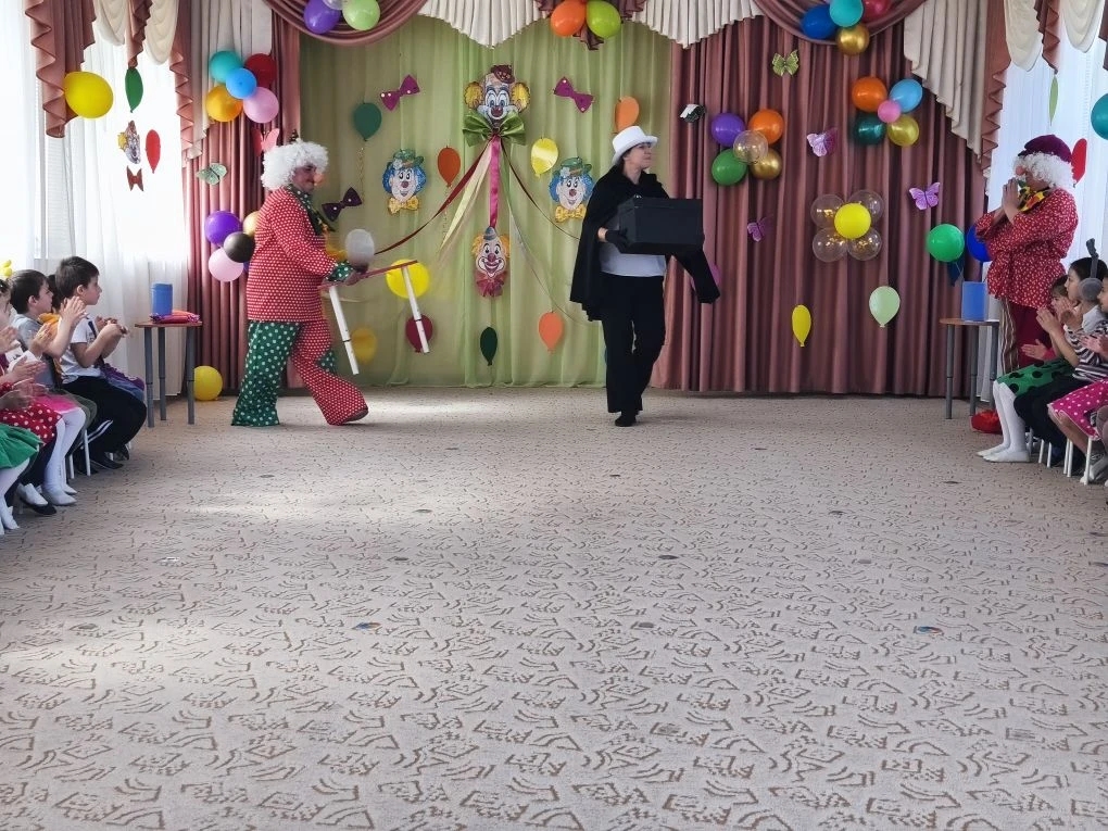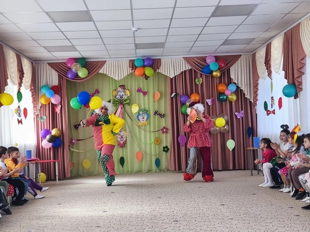 В нашем детском саду 1 апреля для старших групп организовали праздник «Праздник-проказник», посвящённый Дню смеха. К детям пришли клоуны Чупа и Чупс с воздушными шарами. Эти шары были не просто украшениями, а началом весёлой истории: с танцами, играми и фокусами. Праздник прошёл шумно и радостно.
