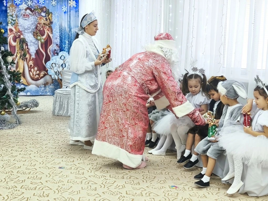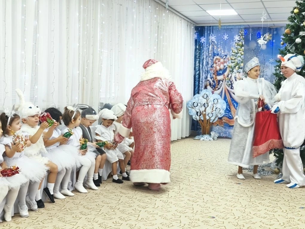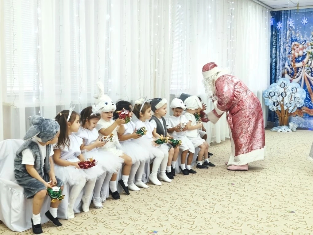 В конце праздника каждый малыш получил подарок от Деда Мороза. Их глаза светились от счастья, когда они разворачивали свои сюрпризы.