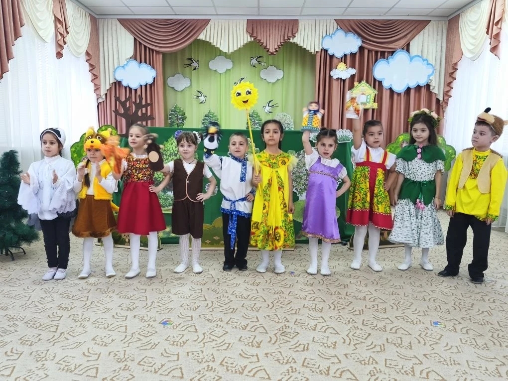 К этому дню готовились все группы. В подготовительной группе «Гномики» прошел кукольный спектакль «Подарок солнышку». В гости на сказку пришли группы «Смешарики», «Непоседы» и «Бусинки».