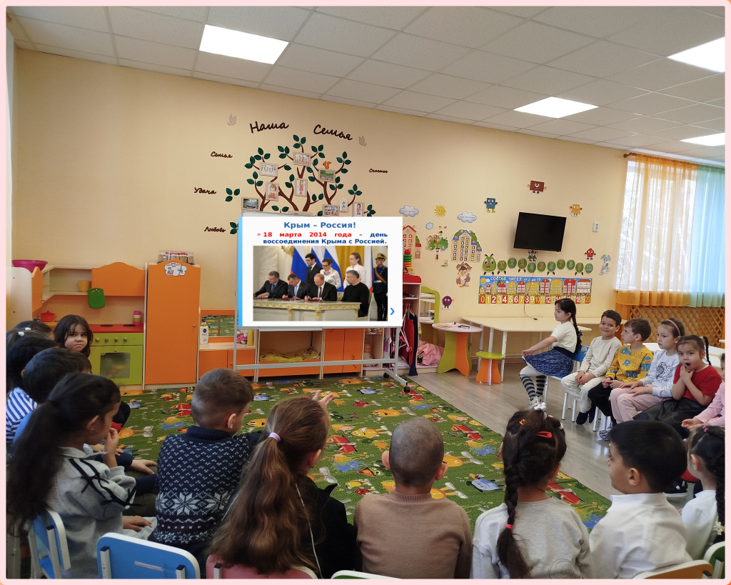 В подготовительной группе "Гномики" состоялась беседа и просмотр презентации на тему "История воссоединения Крыма с Россией". Ребята узнали о важном историческом событии.