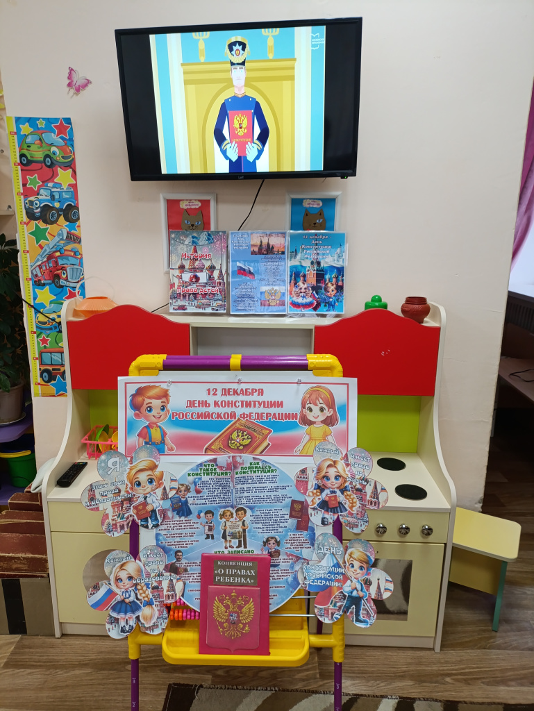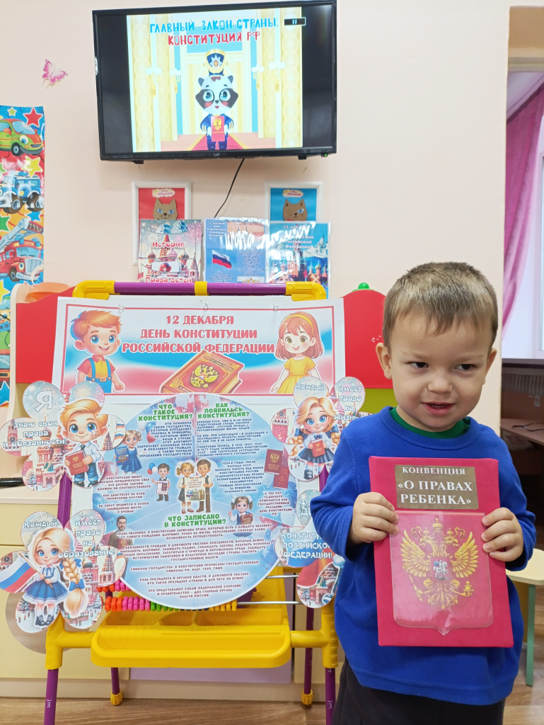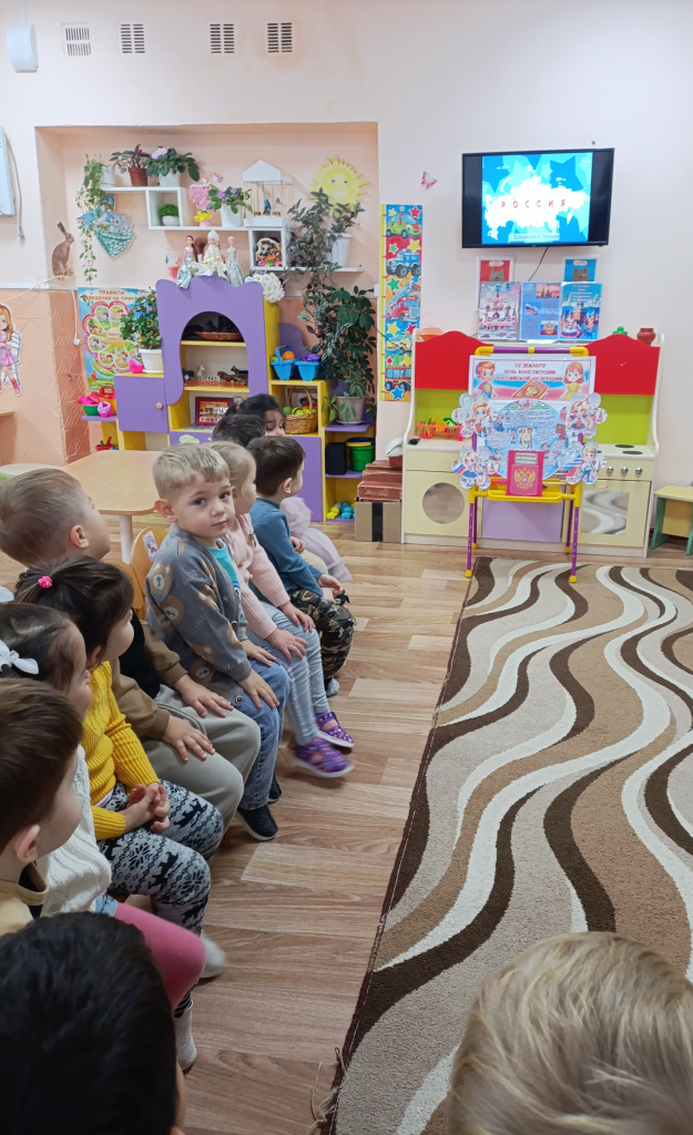В младшей группе «Смешарики» состоялась серия познавательных бесед, приуроченных ко Дню Конституции. Целью этих занятий стало знакомство малышей с государственными символами России — флагом и гербом, а также формирование у них чувства принадлежности к своей стране.