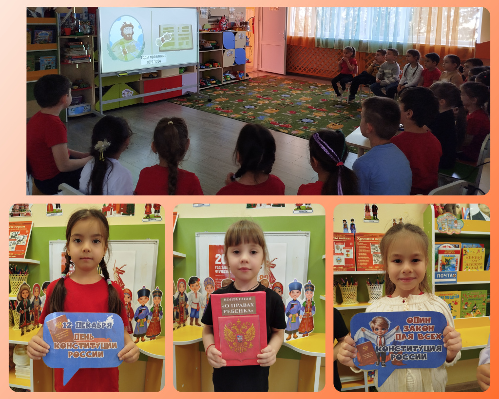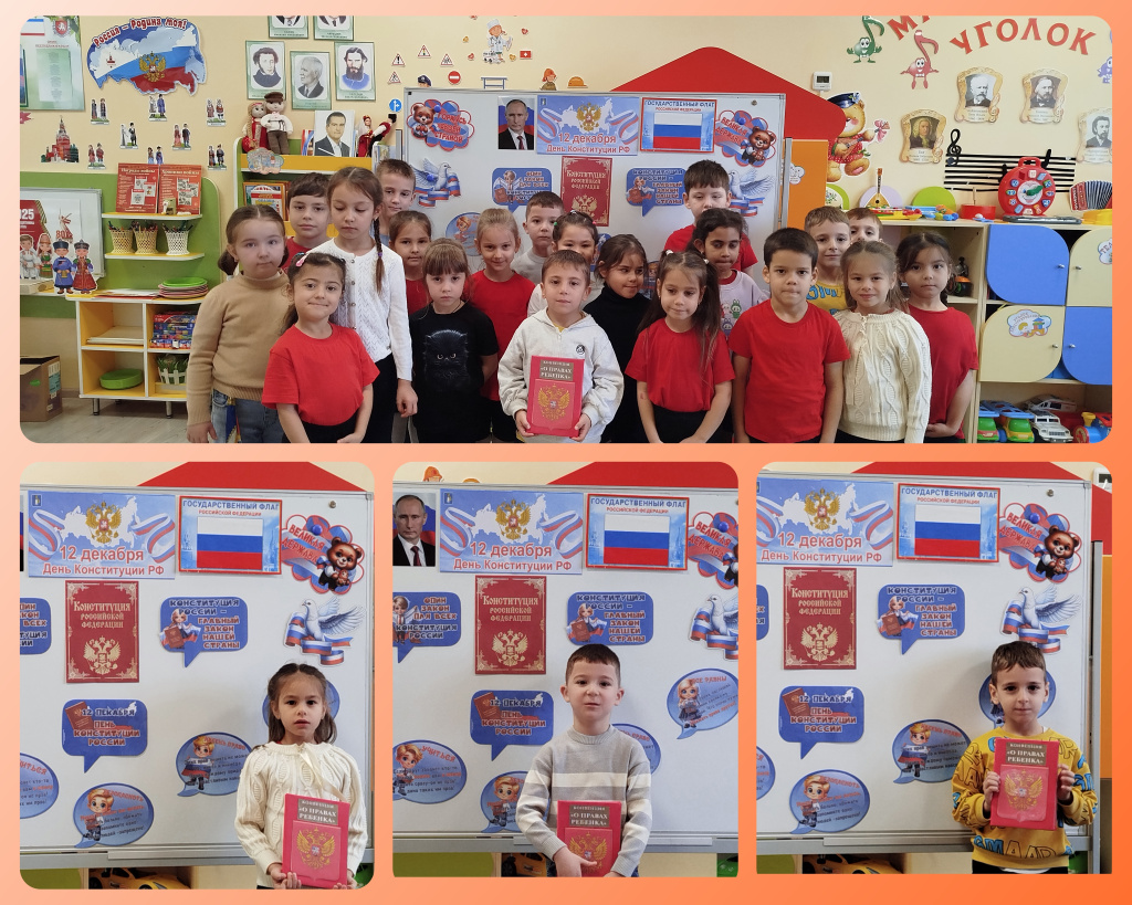 Воспитанники узнали, что Конституция — главный закон страны, в котором описаны права и обязанности граждан. Его обязаны соблюдать все: от Президента до каждого ребенка. Мы гордимся тем, что живем в самой большой и сильной стране мира — России.