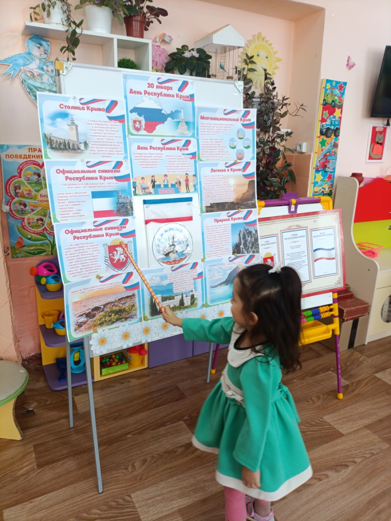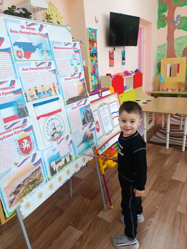 День Республики Крым в младшей группе «Смешарики» не стал исключением. Воспитатели и дети погрузились в атмосферу праздника. Ребята узнали об истории этого дня, познакомились с символами и достопримечательностями Крымского полуострова.