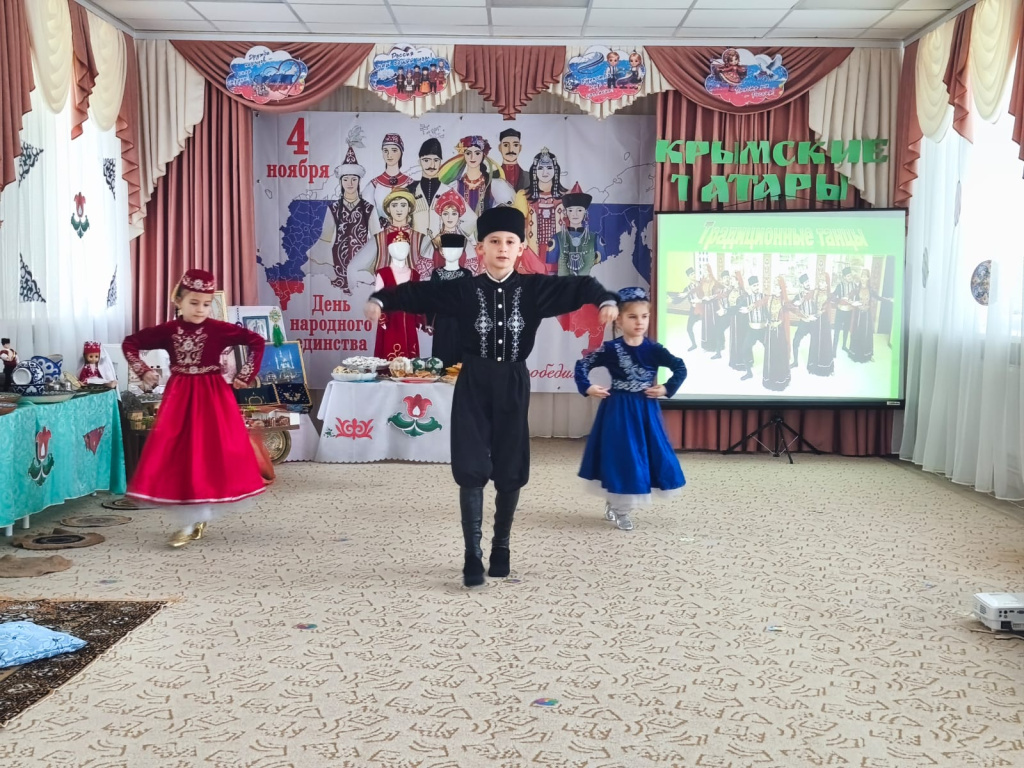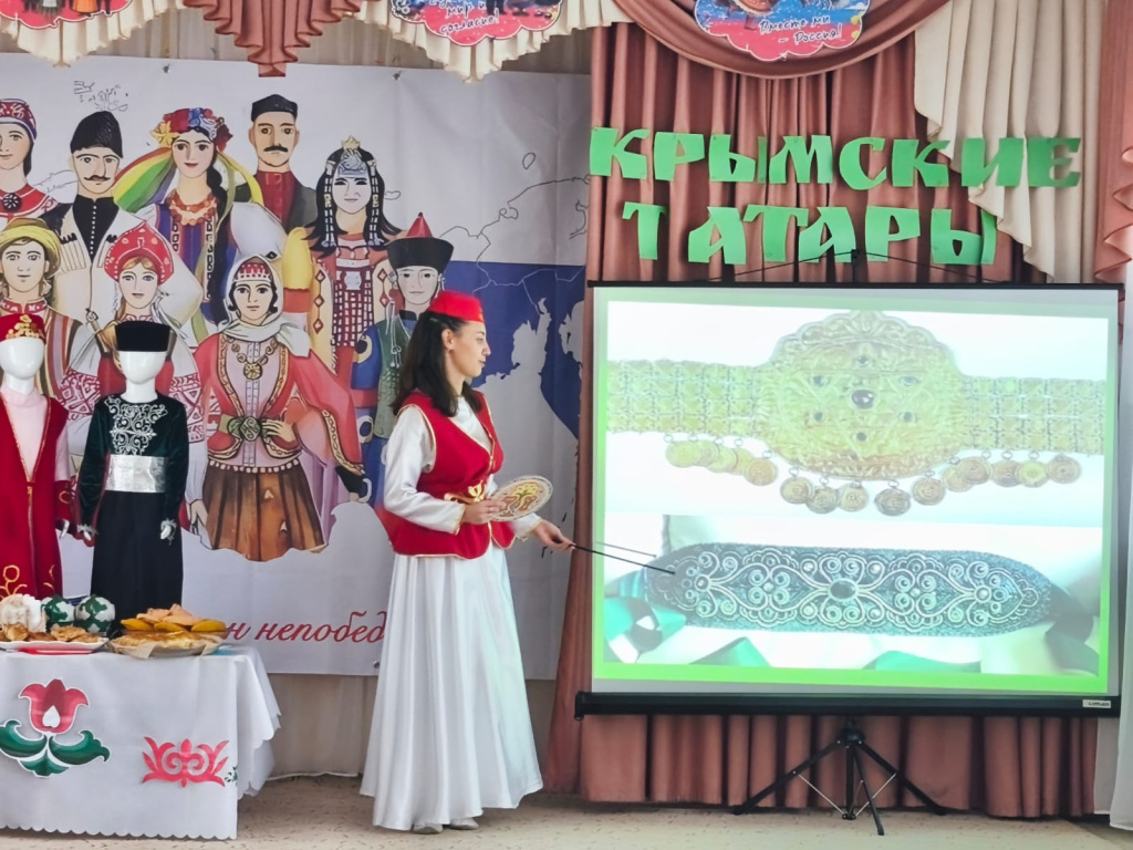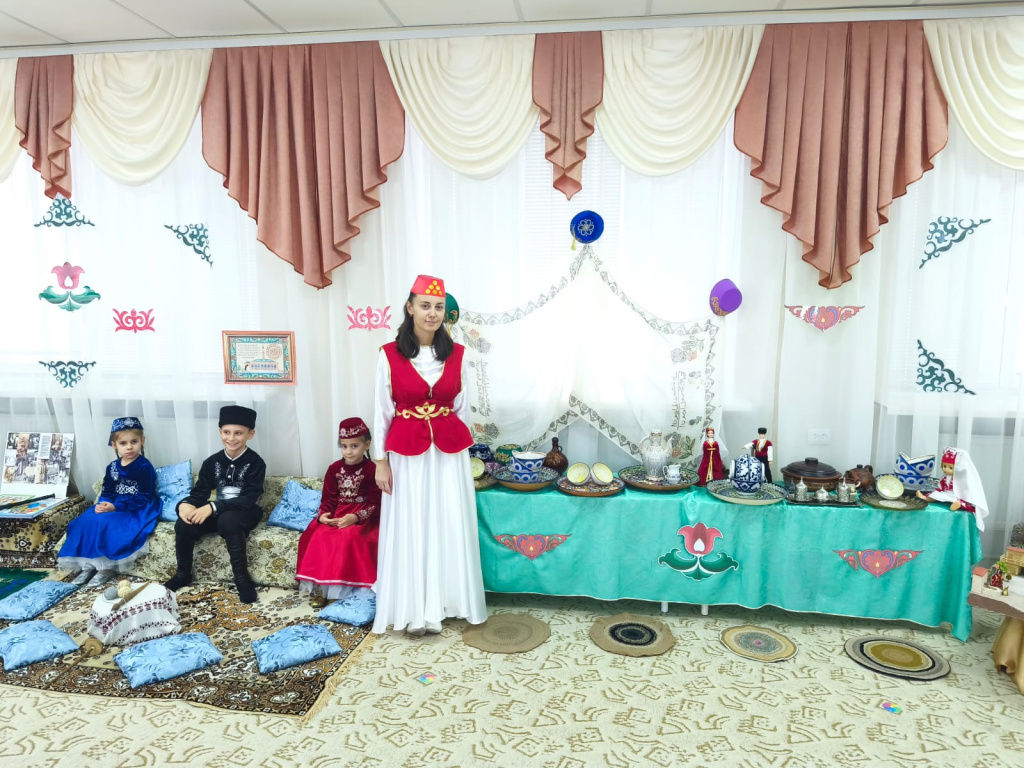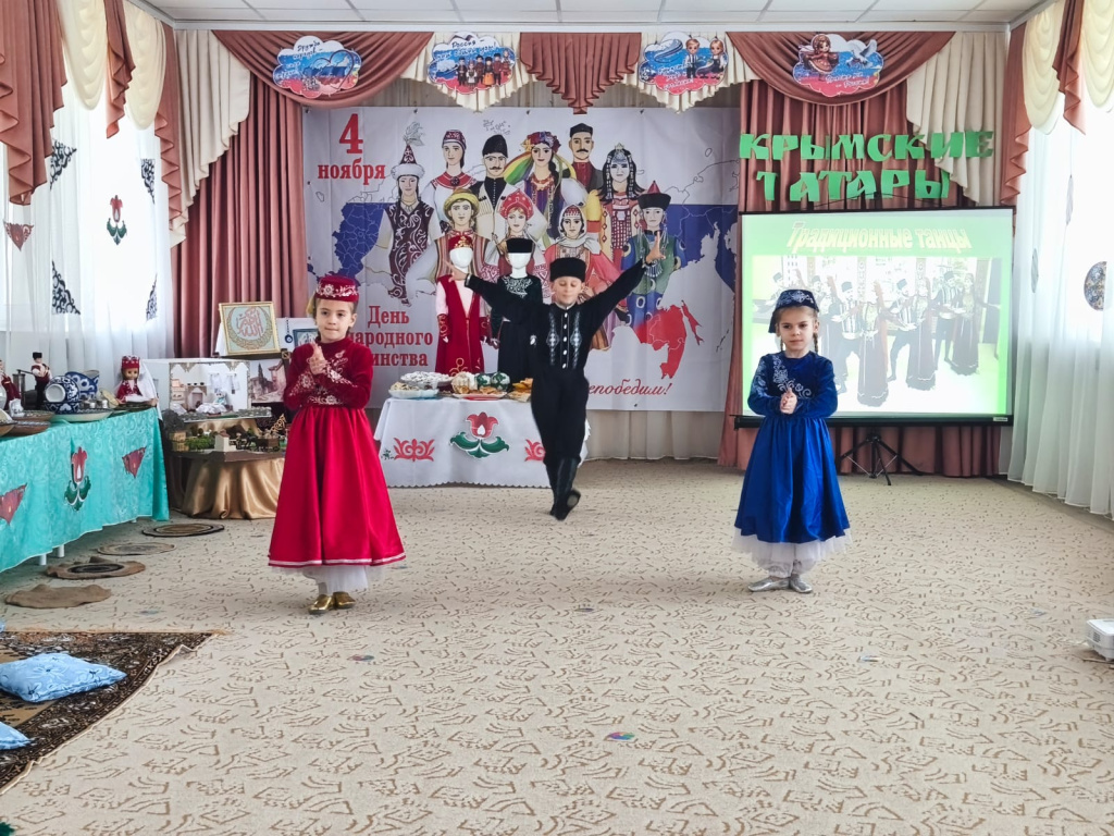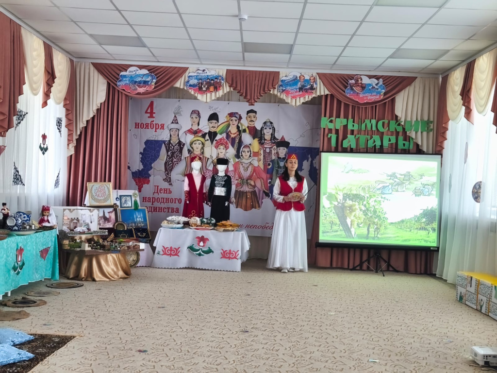 Младшая группа «Смешарики» под руководством воспитателя Решетовой Э.Л. организовала мероприятие, на котором представители национальность -Крымские татары, познакомили детей с традициями и обычаями этого народа. Гости исполнили национальные танцы, сыграли в народные игры и прочитали стихи. Дети смогли узнать о культуре крымских татар, их быте и национальных костюмах. Праздник получился насыщенным, познавательным и весёлым.