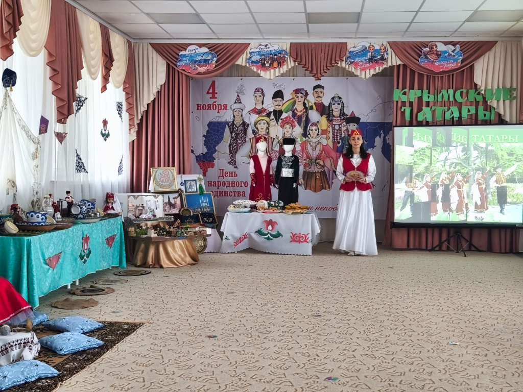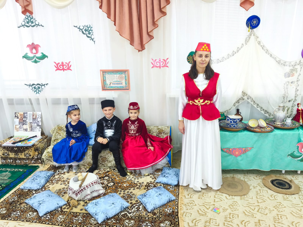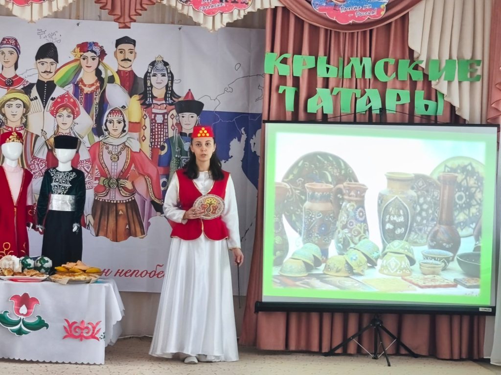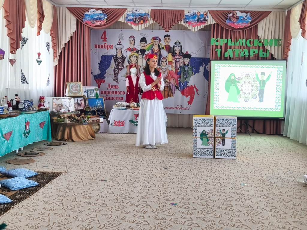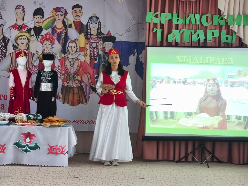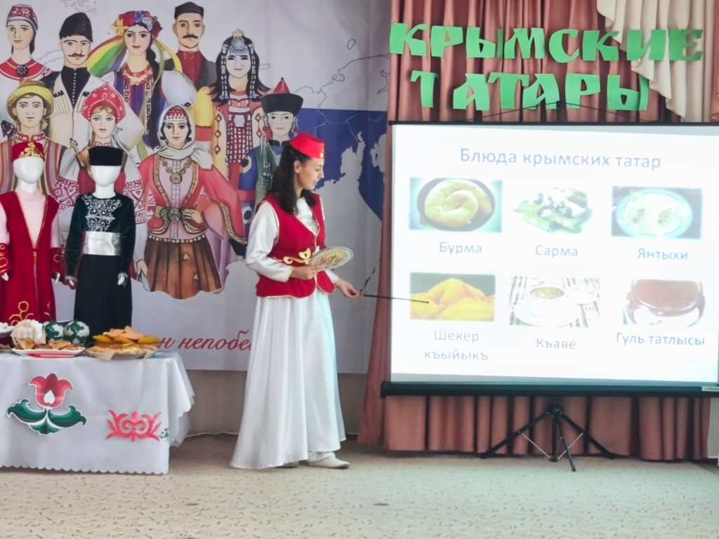 Младшая группа «Смешарики» под руководством воспитателя Решетовой Э.Л. организовала мероприятие, на котором представители национальность -Крымские татары, познакомили детей с традициями и обычаями этого народа. Гости исполнили национальные танцы, сыграли в народные игры и прочитали стихи. Дети смогли узнать о культуре крымских татар, их быте и национальных костюмах. Праздник получился насыщенным, познавательным и весёлым.