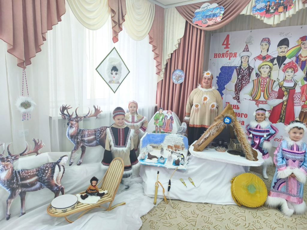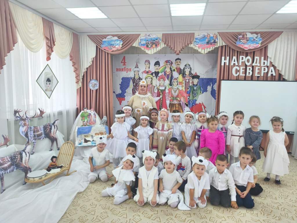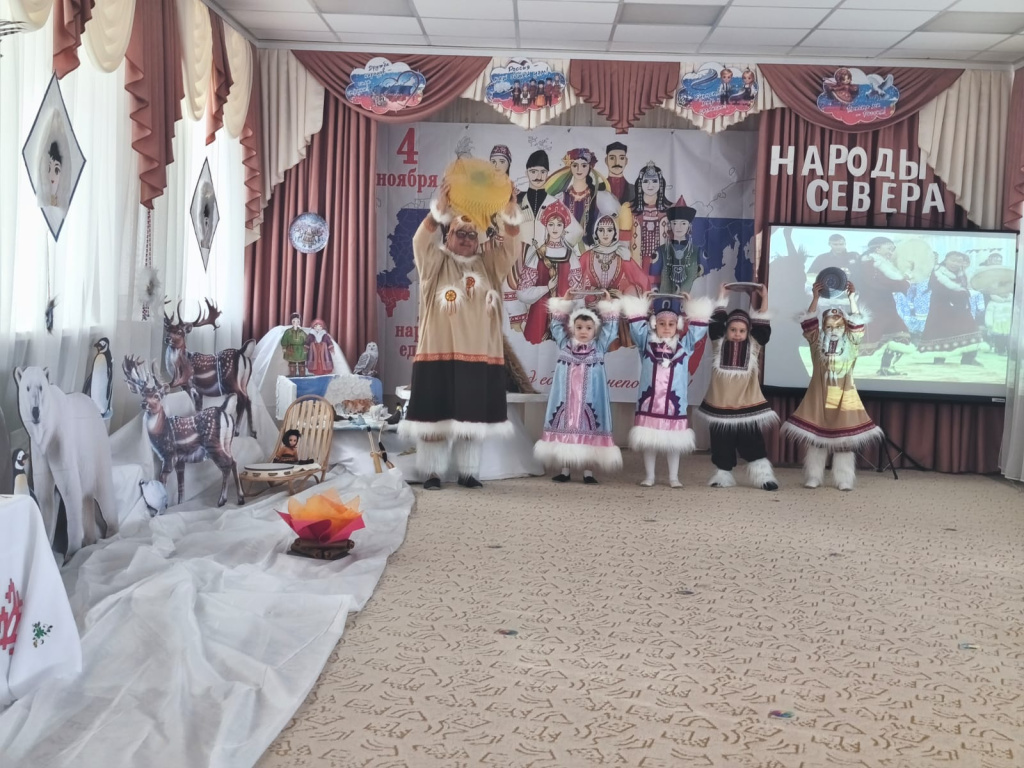 В нашем детском саду продолжается фестиваль «Дружба народов». Сегодня мы отправимся на север России, чтобы познакомиться с народами этого региона. Воспитанники средней группы «Бусинки» под руководством воспитателя Петровой Т.О., познакомят детей с народами Севера.
