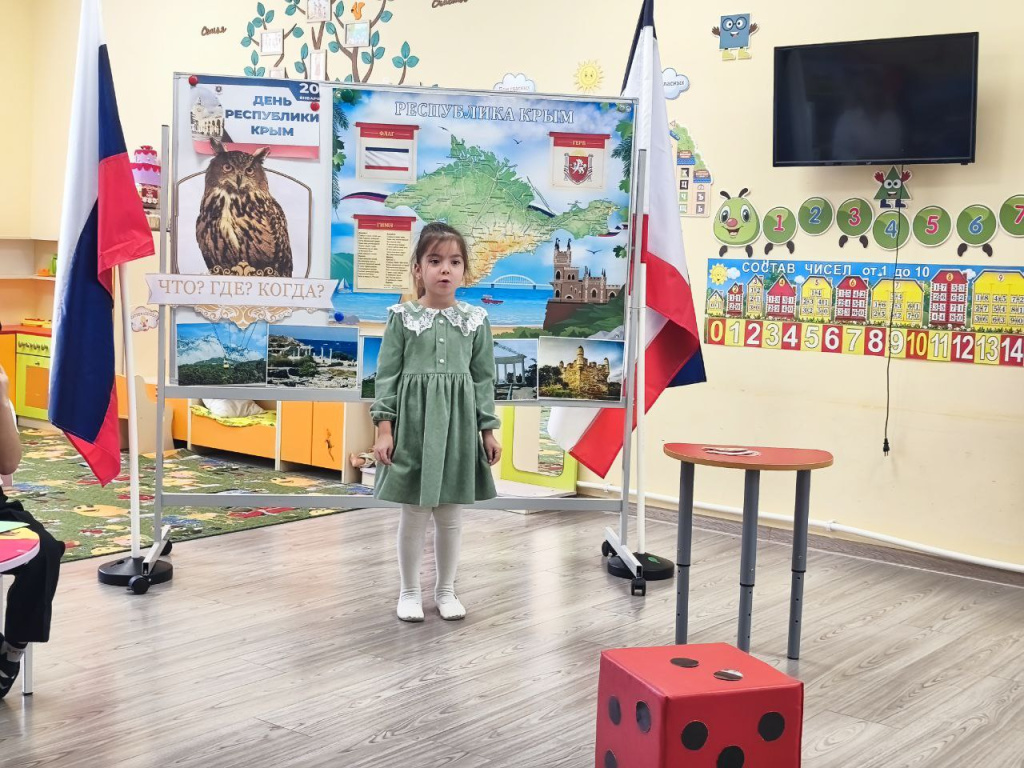 В подготовительной группе «Гномики» под руководством воспитателя Бадеры Н.А. состоялась интеллектуальная игра «Что? Где? Когда?», приуроченная ко Дню Республики Крым. Этот праздник отмечается 20 января. В рамках подготовки к мероприятию мы разработали игру «Крым: Что? Где? Когда?». Воспитанники заранее подготавливались к этому событию