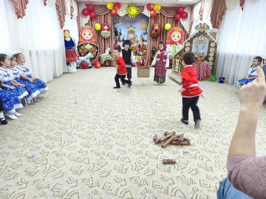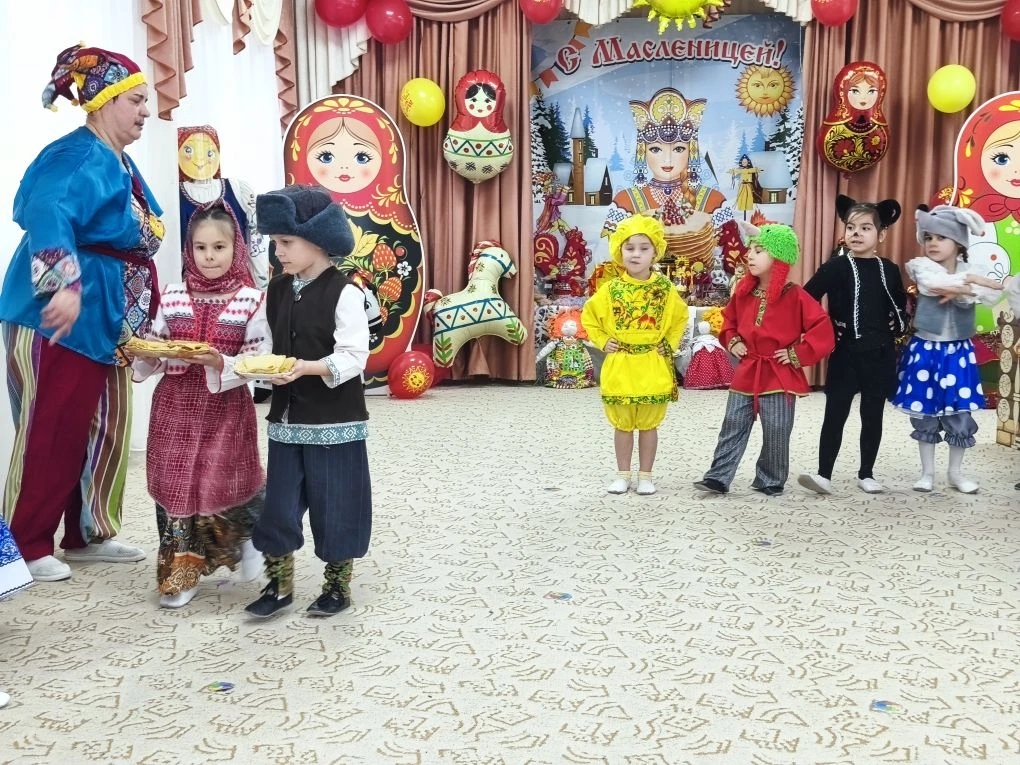 Дети из подготовительной группы «Гномики» показали ребятам театрализованную сказку «Приключения Блинка на Масленицу». Артисты погрузили юных зрителей в атмосферу масленичных развлечений. Ребята с большим интересом посмотрели театрально-игровую программу о том, как дед и баба пекли блины и какие приключения произошли с непоседой Блинком. Они также с удовольствием приняли участие в играх и хороводах.