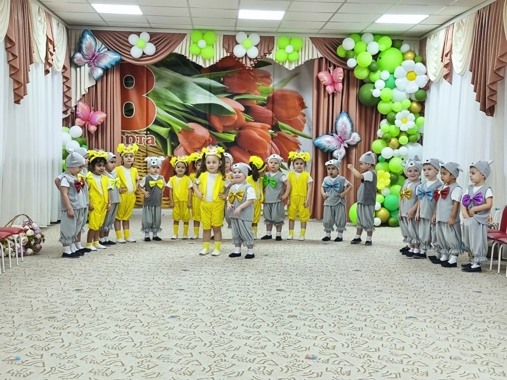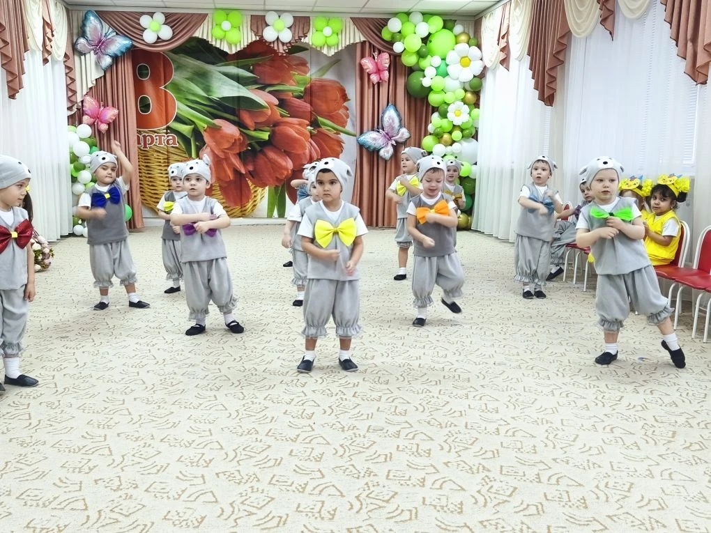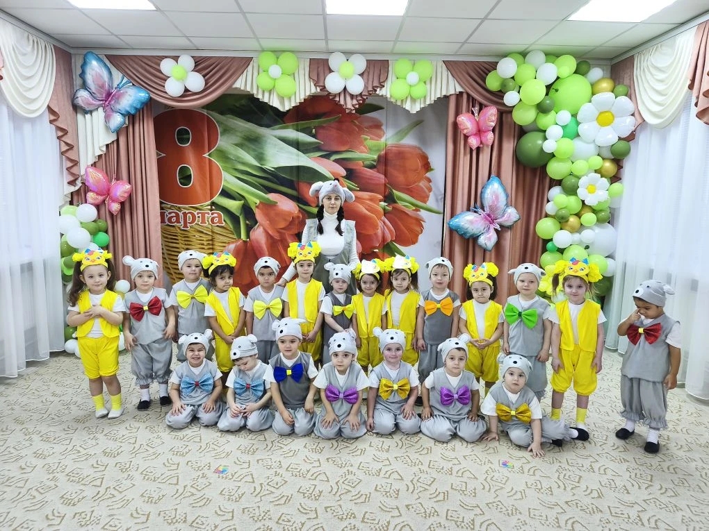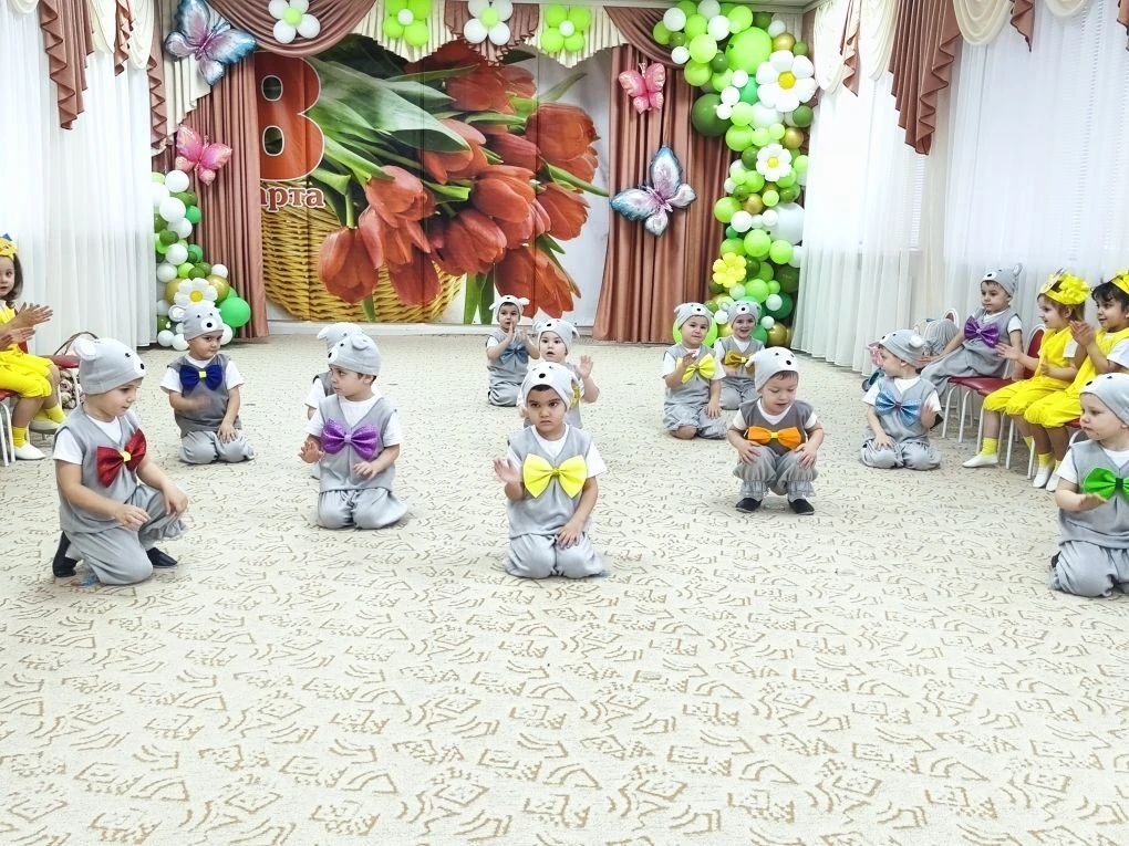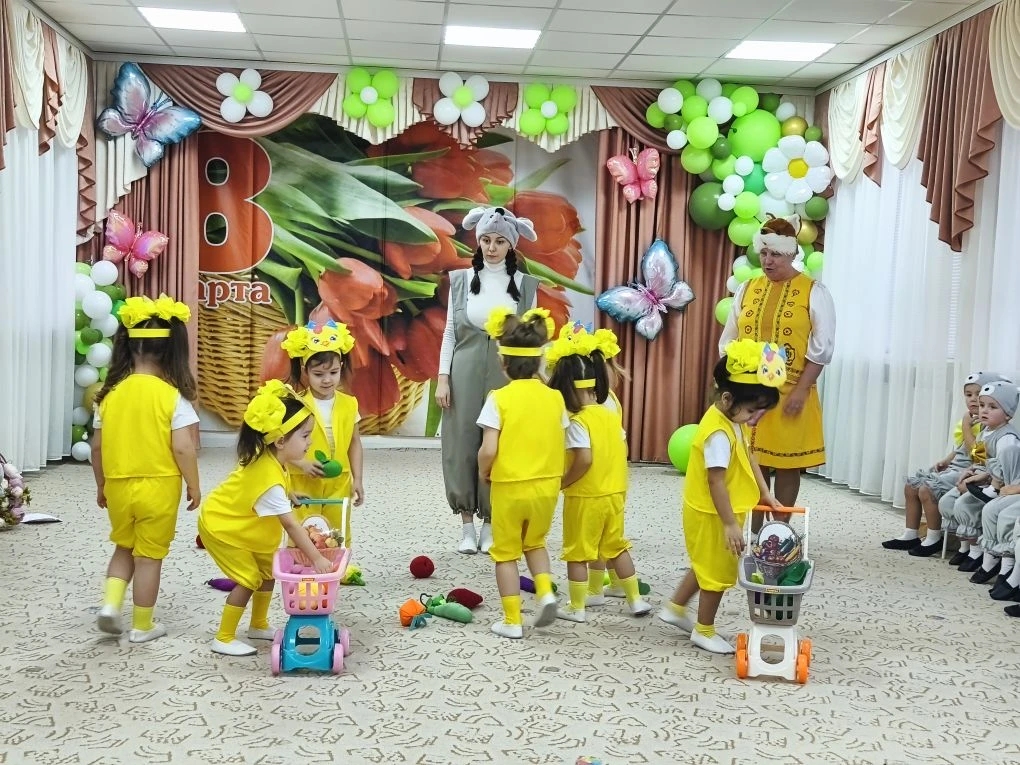 адшей группе "Смешарики" отметили праздник "8 Марта". В гости к детям пришла курочка и вмести с ней дети поздравляли своих мам и бабушек.