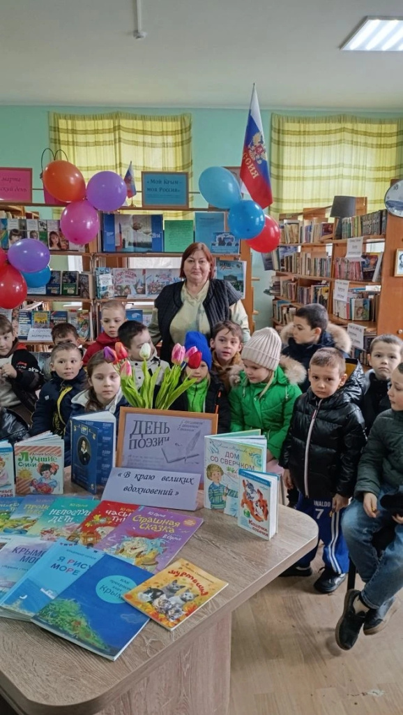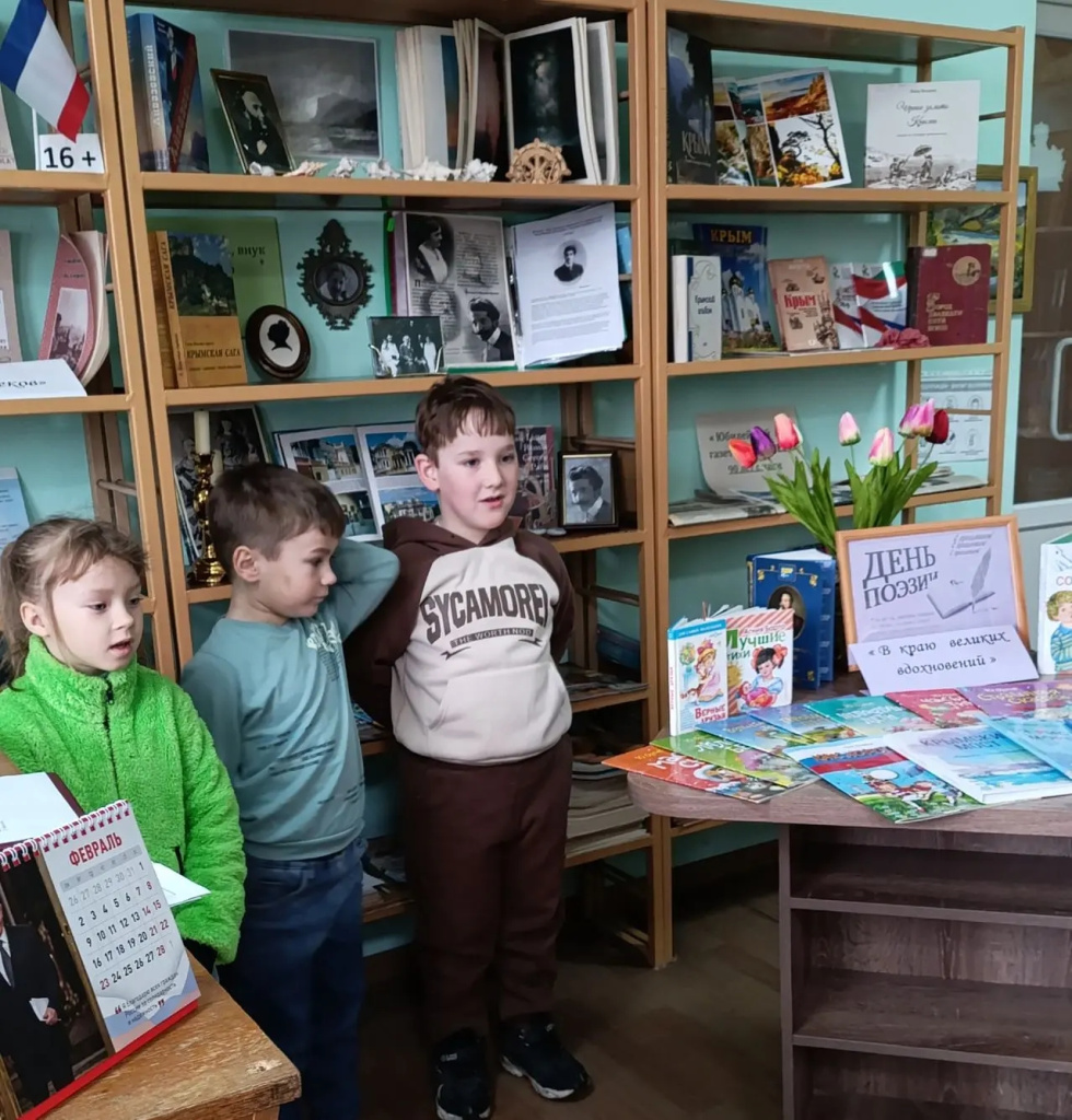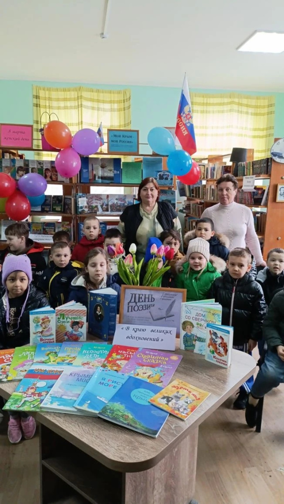 21 марта 2026 года Россия, как и ежегодно, отметила Всемирный день поэзии. Дети из старшей группы «Непоседы» посетили сельскую библиотеку, где прошло особое мероприятие. Они читали стихи, а библиотекарь Ольга Александровна Косякина организовала выставку и рассказала о поэтах Республики Крым.