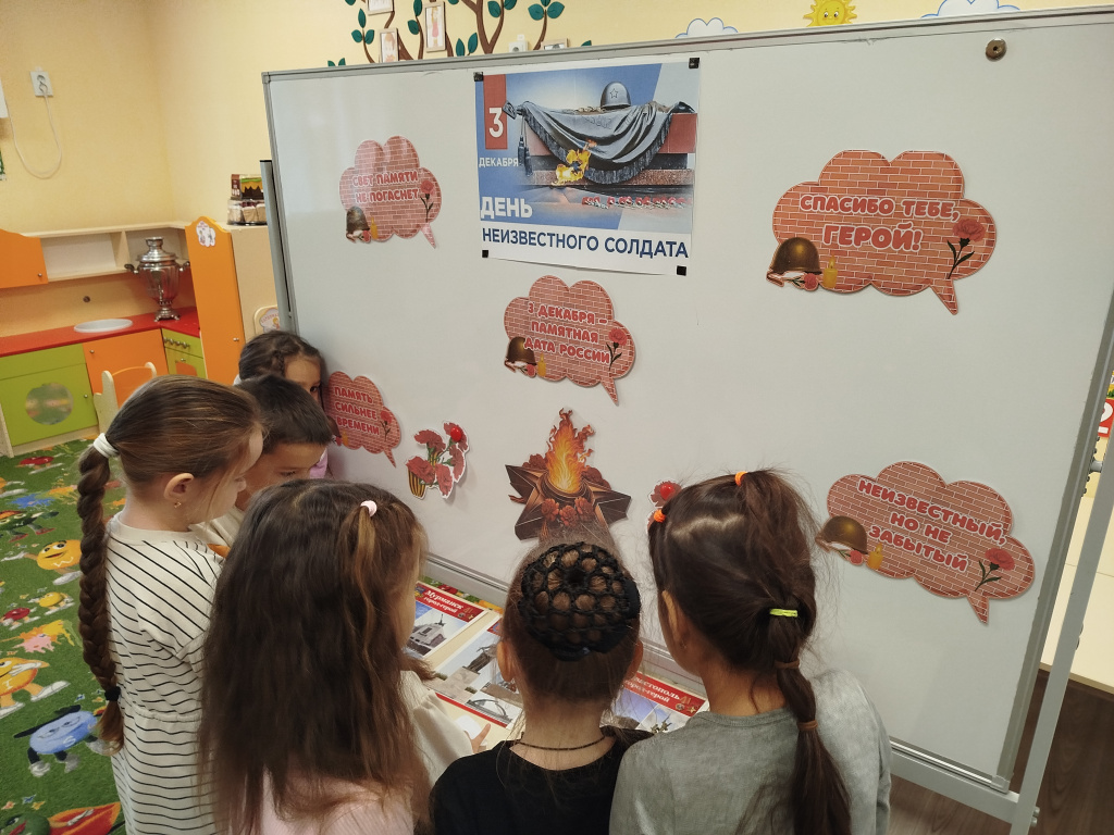 Ребята узнали об истории этого дня и его значении для сохранения памяти о героях Великой Отечественной войны. Особое внимание уделили рассказам о подвигах советских солдат, их мужестве и героизме. Дети посмотрели документальные кадры, послушали стихи и песни о подвиге Неизвестного солдата и посетили музей Великой Отечественной войны.